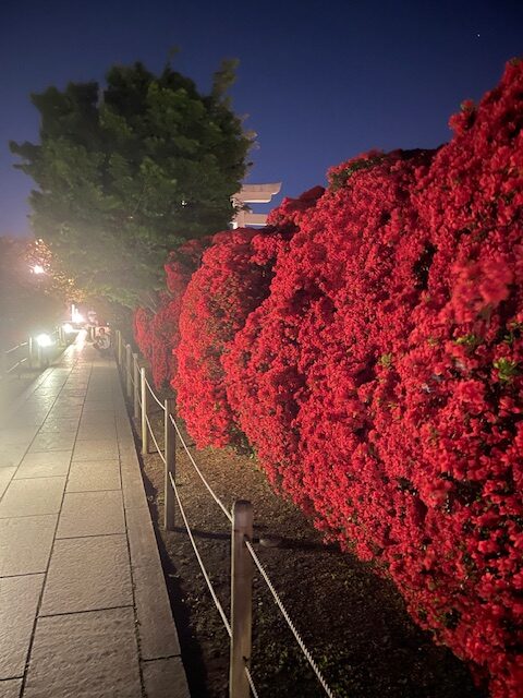 先日、お店の前でお客様に会ってお話をしてたのですが、長岡天満宮へつつじを見に散歩へ行ってきたと言っておられて、今年はつつじの満開が早いみたいよ!と